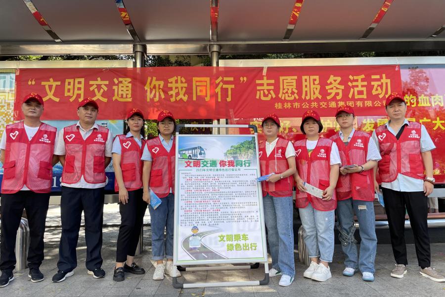 为积极营造绿色、健康、环保、文明的交通出行环境,7月28日,桂林市公共交通集团有限公司开展“文明交通 你我同行”志愿服务活动,向市民、乘客发出文明交通绿色出行倡议。当天,桂林公交利用横幅标语、展...