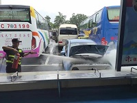 近日,桂林北站东广场1号停车场突发一起车辆起火事故。一辆私家车在入库时,驾驶员因操作失误误将油门当作刹车,车辆失控撞向广场南侧连廊墙基,引擎舱随即起火并冒出浓烟,现场情况危急。 正在执勤的...