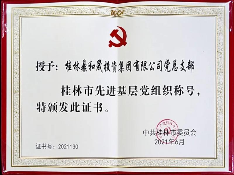 在庆祝中国共产党成立100周年之际,桂林鼎和晟集团党总支被中共桂林市委员会授予“桂林市先进基层党组织”称号。一直以来,在集团公司党委的正确领导和关心帮助下,鼎和晟党总支以习近平新时代中国特色社...