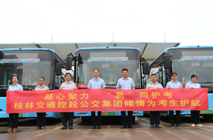 7月7日至7月8日,阳朔山水交运公司安排了47辆观光车、20辆新能源大巴,在阳朔县开展“爱心送考活动”,为480名高考考生提供免费接送服务。