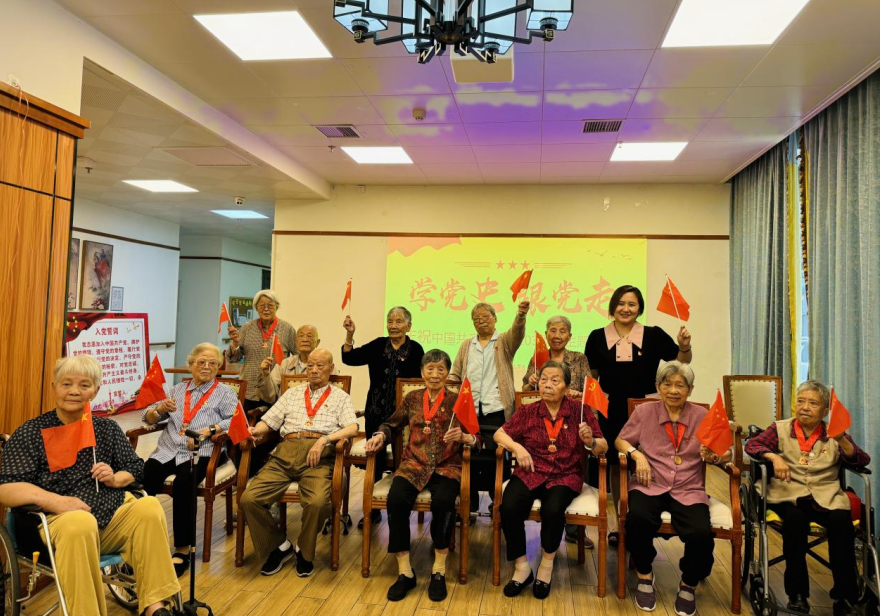 ▲7月1日,康颐养老公寓以“学党史,跟党走”为主题,举办了一场别开生面的庆“七一”主题活动,老同志们以歌献党、以诗寄情,为党的103岁生日送上最诚挚的祝福。