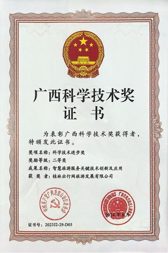 近日,自治区党委、政府在南宁召开全区科技大会、广西科学技术奖励大会,揭晓了2023年度广西科学技术奖获奖成果名单。其中,bevictor伟德官网桂林出行网旅游发展有限公司科技成果“智慧旅游服务关键技术创新及应用”荣获2023年度广西科技进步二等奖。