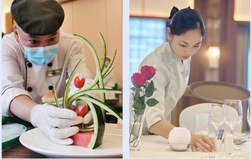 在平乐温德姆酒店,选手们动作娴熟,技艺精湛,展示出了扎实的酒店服务功底与敬业精神;消防技能赛场,选手们模拟紧急抢险救援,行动迅速专业地穿戴装备,尽显酒店消防安保人员的专业与责任。