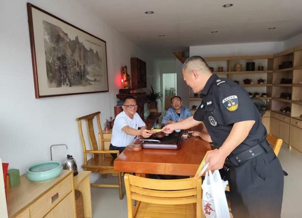 ▲鼎捷资产公司向物业租户发放消防安全宣传折页,开展安全倡议活动。(照片拍摄:谭艳虎)