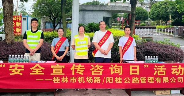 ▲阳朔山水公司在公共场所设立安全生产月活动宣传栏,面向公众宣传安全知识。(照片拍摄:陆文彬)