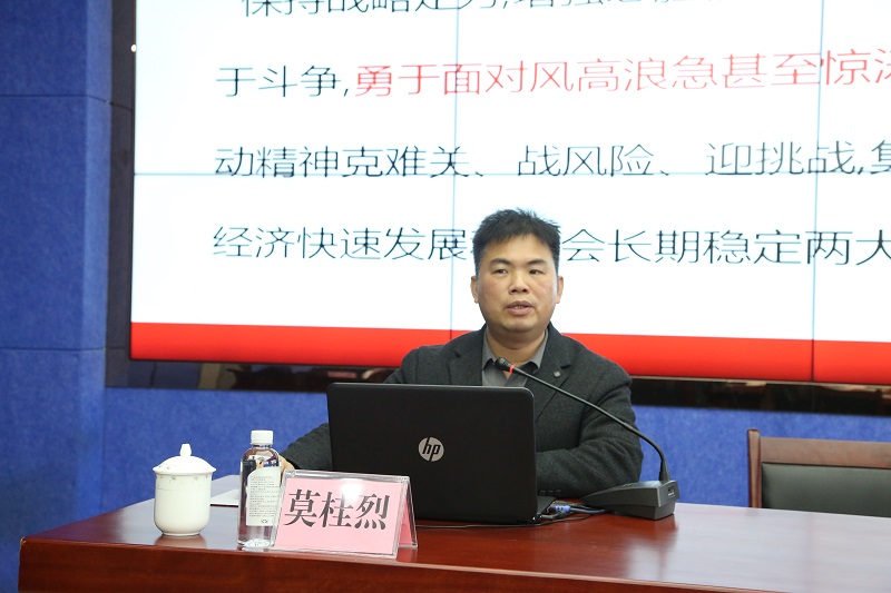 为深入学习贯彻党的二十届四中全会精神,准确把握关于推进中国式现代化的重大部署,切实把集团全体党员干部的思想和行动统一到党中央决策部署上来,1月27日,bevictor伟德官网召开党的二十届四中全会精神宣讲暨学习研讨会,邀请中共桂林市委党校副校长、副教授莫桂烈进行专题宣讲。集团公司领导班子,总部部室负责人及全体党员,各成员单位负责人及党员代表参加会议。