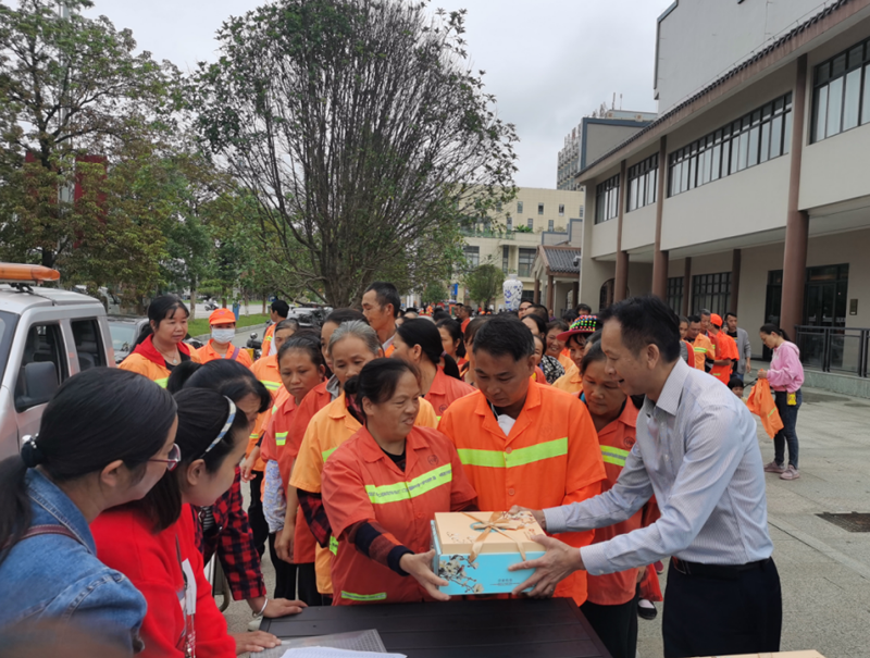 国庆中秋佳节来临之际,9月28日,平乐弘润公司携手平乐温德姆酒店、财富新城全体员工,在平乐温德姆酒店开展慰问平乐环境守护者活动,向常年坚守在一线的平乐环卫工人表达谢意。活动中,平乐弘润公司为每位环卫工人送上了温德姆酒店制作的“繁花月影”月饼礼盒,并送上了真诚的祝福,礼品虽小,承载的是浓浓的关怀。平乐弘润公司还呼吁广大市民尊重环卫工人劳动成果,共同努力维护环境卫生,做文明城市的守护者。(平乐弘润公司 黄雪 王玲)