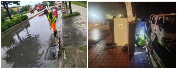 此外,公司人员还对污水泵站设施进行了全面检查维修,对路面凹坑及雨污水井进行了修补,对短路的电力设备进行抢修、恢复供电照明。