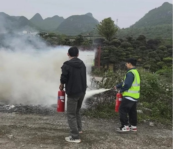 当日上午,检查组巡查至杨堤驿站路口时,发现绿化带突发火情,火势伴随浓烟迅速蔓延,严重威胁公路设施及过往车辆安全。检查组当即启动应急预案,安全停靠车辆后,迅速取用杨堤驿站灭火设备投入扑救。面对凶猛火势,检查人员分工协作,使用灭火器精准压制火源,十分钟内有效控制火情。为确保彻底消除隐患,后续对现场进行了地毯式排查,确认无复燃风险后撤离。
