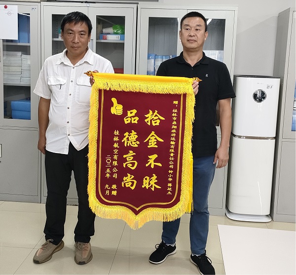 近日,桂林航空有限公司的代表将一面绣着“拾金不昧,品德高尚”的锦旗送到bevictor伟德官网鼎翔旅游公司。这面锦旗背后,是两位普通的通勤专线驾驶员用六年坚守书写的温暖故事——钟小华与蒋廷杰师傅,在平凡的十二米车厢里,以一次次“完璧归赵”的善举,为旅途注入诚信的温度。