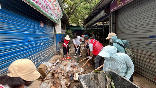 2024年6月洪水退去后,花鸟市场一片狼藉。淤泥与腐烂垃圾混杂,在烈日下散发着刺鼻恶臭。严姣友主动请缨,加入公司组织的灾后清淤突击队。她与男同事们一同搬运沉重垃圾袋、清扫黏腻淤泥。汗水湿透衣衫,泥点溅满脸颊,同事劝她休息,她只是抹一把汗,笑着说:“多干一点,市场就能早一点恢复。”连续两天奋战,道路恢复整洁。