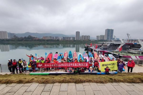 2022年新年伊始,弘润公司印山旅游码头就迎来了第一批“客人”。1月1日,桂林市桨板协会在弘润公司印山旅游码头开启2022元旦平乐漓江畅划之旅,畅划过程中尽显水上运动魅力,同时以水上运动号召保护漓江。