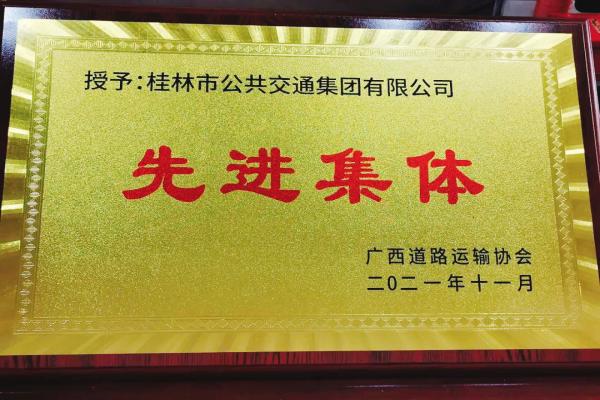 2021年11月18日,广西道路运输协会城市公共交通分会2021年工作会议在梧州市召开,会议表彰了广西城市公共交通行业的“先进集体”、“先进线路”和“先进个人”。桂林交通控股公交集团荣获广西城市公共交通行业“先进集体”荣誉称号,公司83线路、K99线路荣获“先进线路”荣誉称号,张咸军、宋小广、肖秀娇等8名同志荣获“先进个人”荣誉称号。