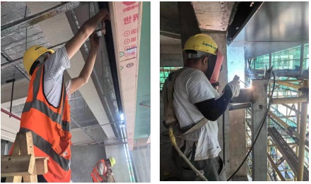 榕湖饭店项目的施工现场一片热火朝天,施工人员挥汗如雨,忙碌在项目最前线,吊顶施工、智能化穿线、电焊作业、地面分隔缝切割等,各个环节有序进行。面对持续的高温天气,公司科学调整施工方案,合理安排作息时间,做好施工人员的防暑保障措施,在施工现场设置了休息区,配备藿香正气水等防暑药品、防暑饮品,加强防暑知识的宣传教育,加强施工现场的安全监督巡查,确保施工现场安全稳定。