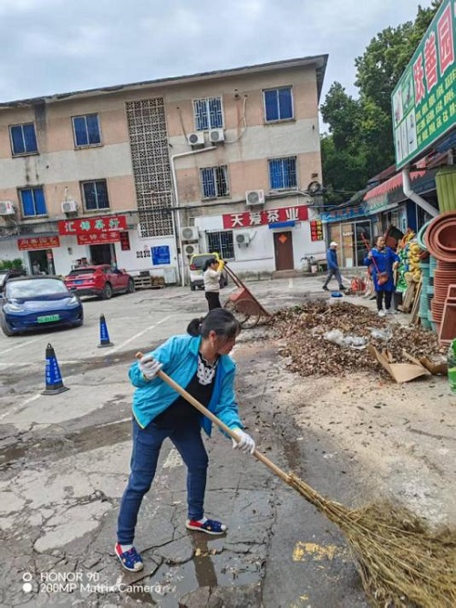 “这边枯树枝太多,上次台风天差点断裂掉下来”市场经营户李女士指着清理现场说道。在专业团队作业间隙,由公司员工组成的志愿服务队主动帮助商户挪移货品、清理卫生死角,赢得商户们交口称赞。“既专业又暖心,这样的服务真贴心!” 李女士竖起大拇指表示。