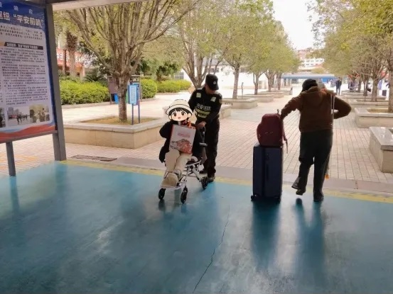 进站口,保安黄师傅发现一位行动不便的旅客正吃力地推着轮椅、手提重物,他快步上前,轻声询问后便接过了轮椅。考虑到旅客出行不便,他还主动联系了站内工作人员,一路护送至指定检票口。“谢谢你们,这一路特别安心。”旅客临别时由衷感慨。