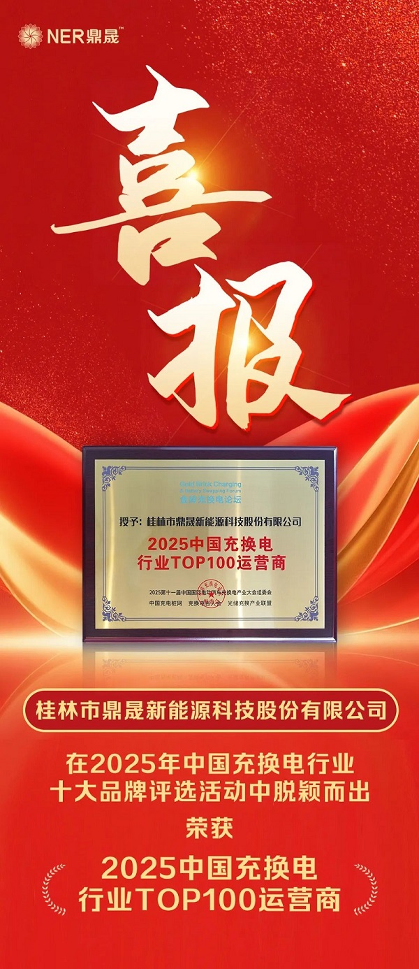 喜报 | bevictor伟德官网鼎晟新能源公司荣获2025中国充换电行业TOP100运营商