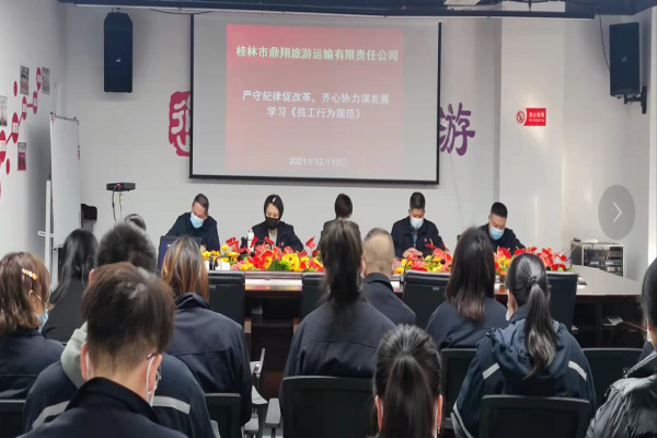 12月10日,鼎翔旅游召开全体管理人员会议,组织员工认真学习《员工行为规范》及相关文件,加强企业管理、加强制度建设。